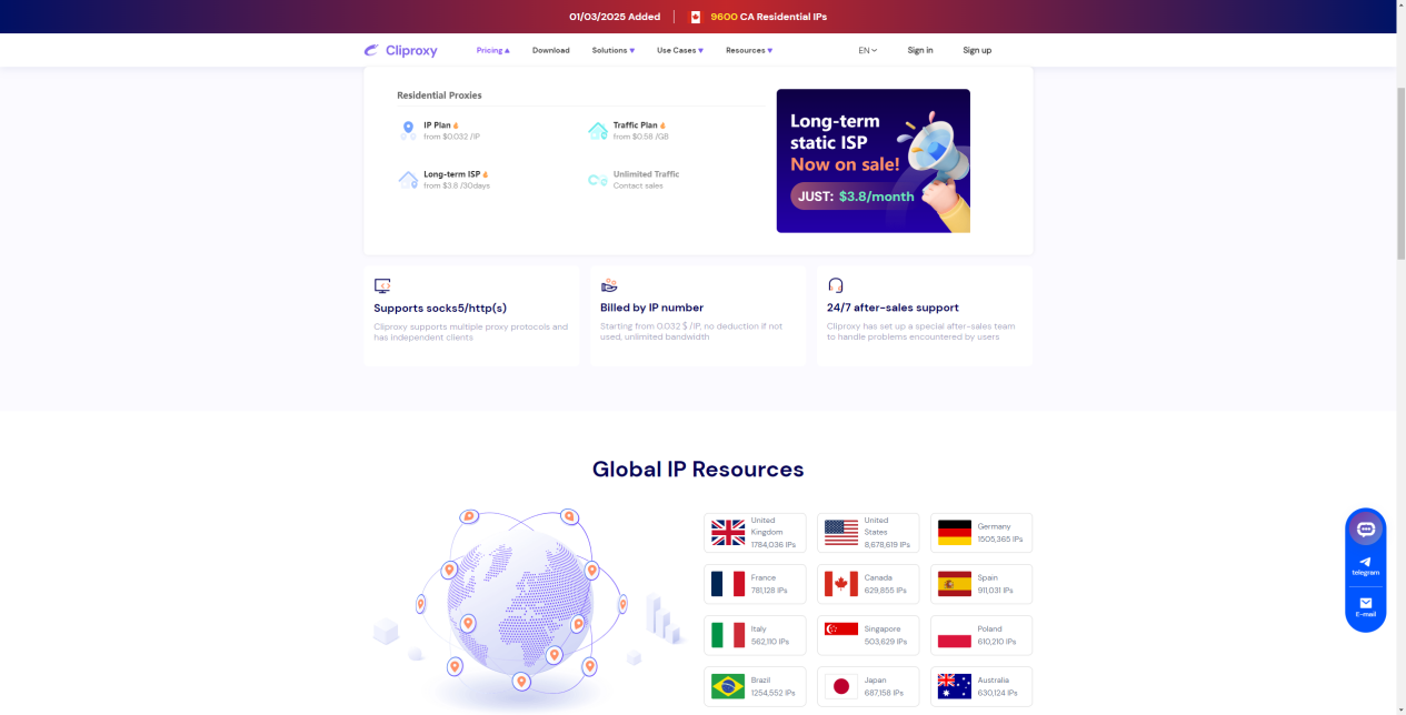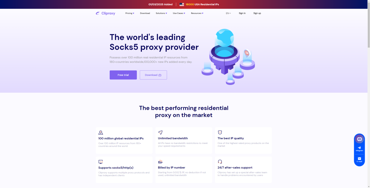 Cli Proxy - es un proveedor de servicios que ofrece IPs proxy residenciales de alta calidad, apoyando a más de 195 países y regiones, y se dedica a proporcionar servicios de proxy estables para la recolección de datos de la red, verificación de publicidad, gestión de redes sociales, operaciones de comercio electrónico, etc. Las IPs residenciales de Cli Proxy provienen de dispositivos reales, son altamente anónimas y evitan la detección y el bloqueo.