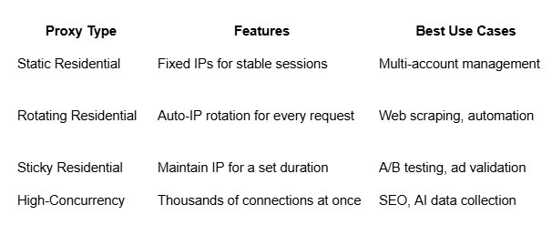 Types de proxy et fonctionnalités offertes par 922Proxy