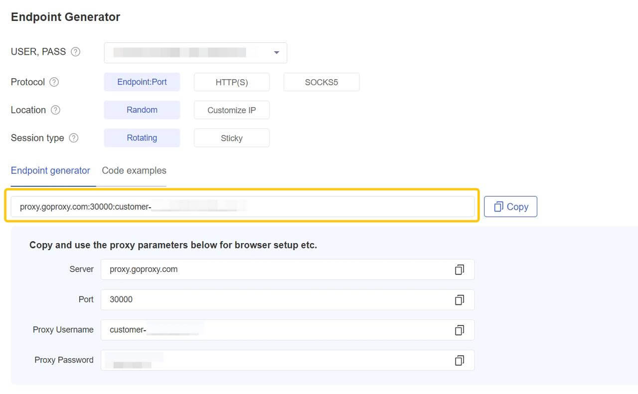 - 例: proxy.goproxy.com:30000:customer-nums123456:ABCDEFG