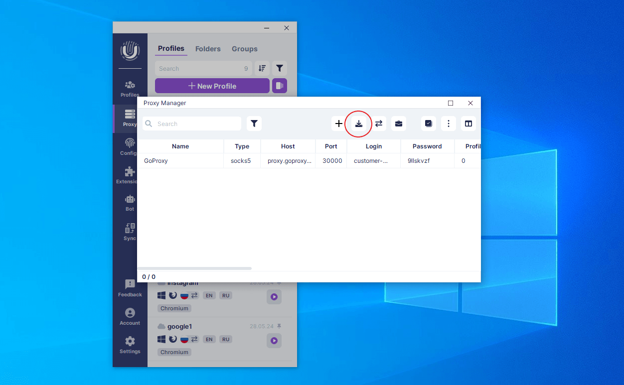 完了です! プロキシの設定が成功裡に完了しました! また、「インポート」ボタンをクリックして、ファイルから一度に複数のサーバーをインポートすることもできます。