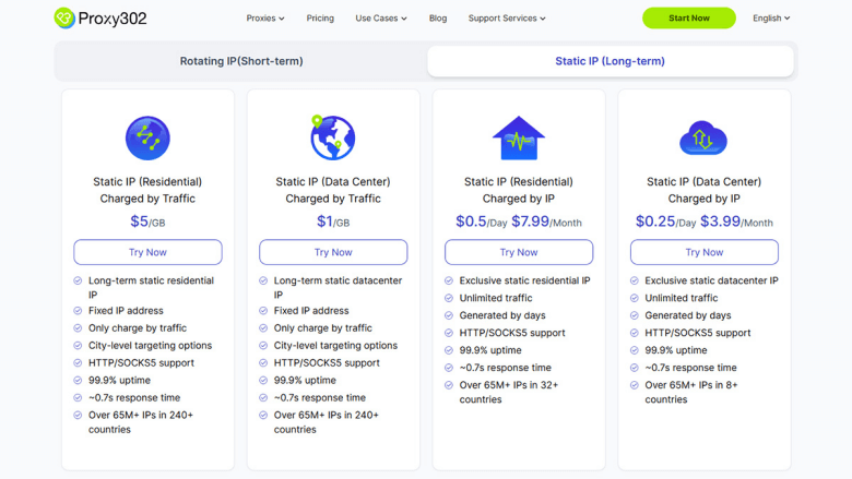 詳細については、公式ウェブサイトをご覧ください。次に、Proxy302のサービスの機能の簡単な紹介です。