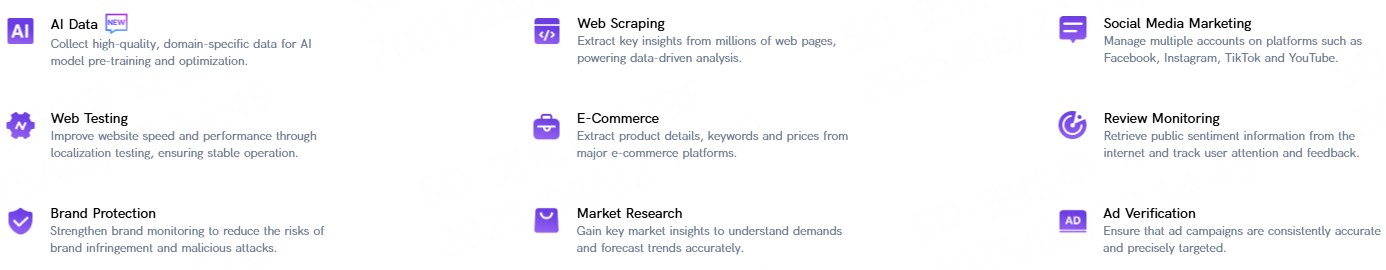 - One-stop service experience: From proxies to custom datasets, meeting all your data needs.