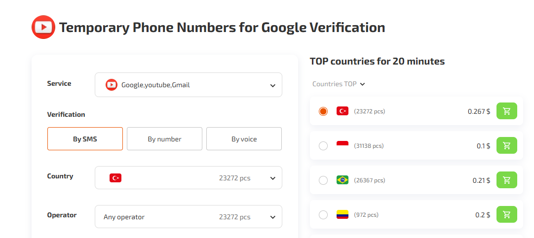Verification by the last digits of an incoming call or by voice (a call is received and a code is dictated) are considered more difficult to bypass and are used more often. Verification by call has been implemented on SMS-Activate, and starting from 2024 the service also shows a dictated code. Thus, all three methods of mobile verification are also suitable for registration with a virtual number.