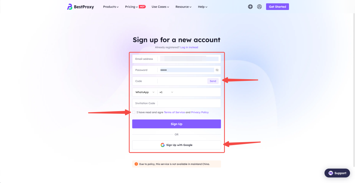 Portanto, oferecemos testes gratuitos para novos usuários, permitindo que você experimente nossos proxies residenciais dinâmicos, proxies residenciais estáticos e proxies de tráfego ilimitado sem nenhum custo. Basta visitar nosso site oficial e registrar uma conta para ativar o teste.