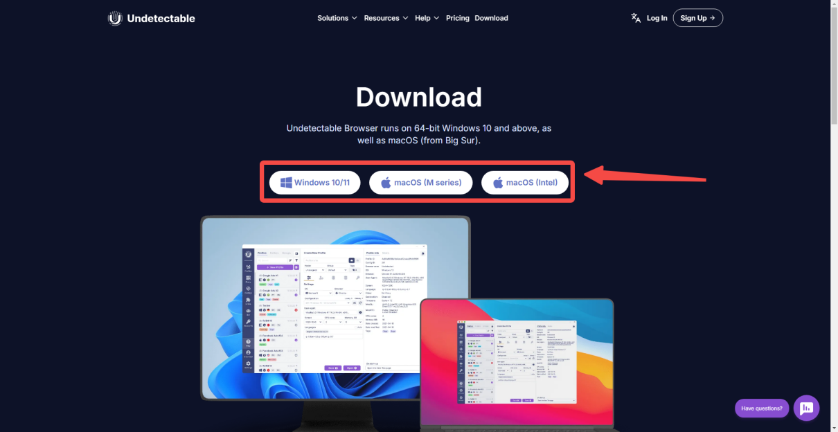 - Visite a página de Undetectable download, clique para selecionar a versão do sistema apropriada e depois faça o download e instale Undetectable.