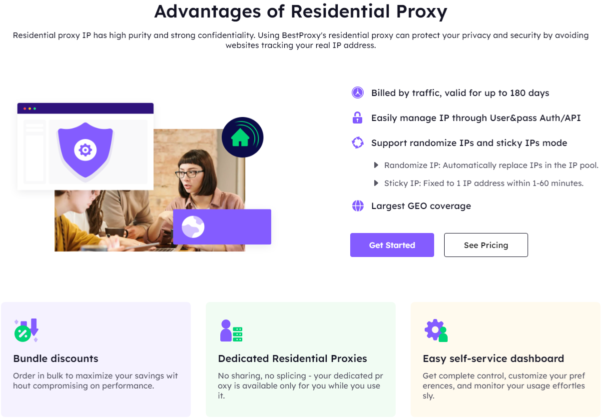 Isso torna a BestProxy a escolha ideal para empresas no comércio eletrônico transfronteiriço, raspagem de dados em grande escala, verificação de anúncios e gerenciamento de várias contas.