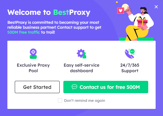 Ao mesmo tempo, nós regularmente oferecemos descontos por tempo limitado e atividades promocionais, especialmente durante feriados ou eventos especiais. Para garantir que você não perca essas ofertas, você pode deixar suas informações do WhatsApp após registrar uma conta, assim você pode receber as últimas atualizações promocionais instantaneamente. Comece a experimentar os serviços premium da BestProxy agora e aproveite ainda mais economias!