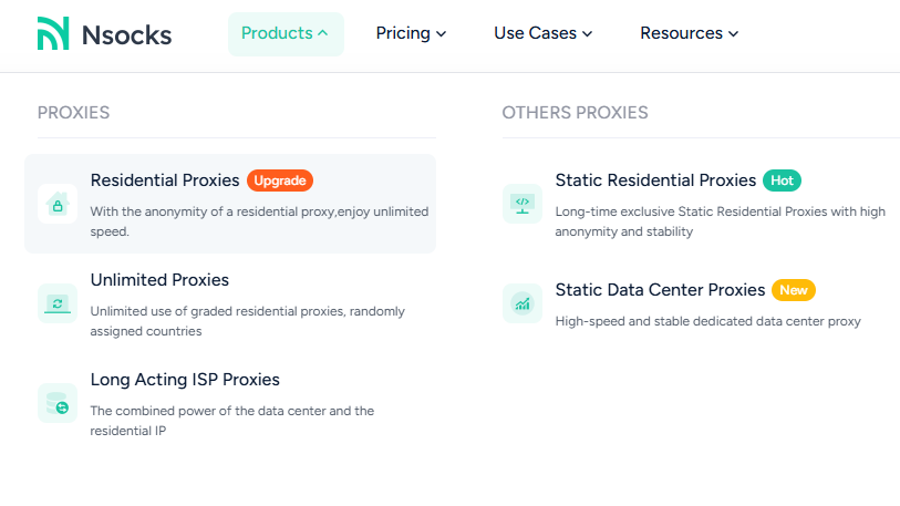 Nsocks é um fornecedor global de proxies líder, oferecendo soluções confiáveis e de alto desempenho para ajudar empresas e desenvolvedores a extrair dados, verificar anúncios, monitorar SEO e mais — tudo isso enquanto evita bloqueios de IP e garante anonimato.
