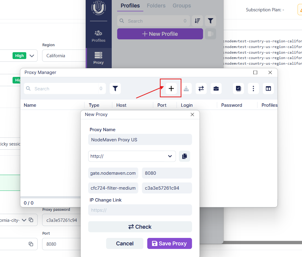 - IP-адрес: введите IP-прокси от NodeMaven.