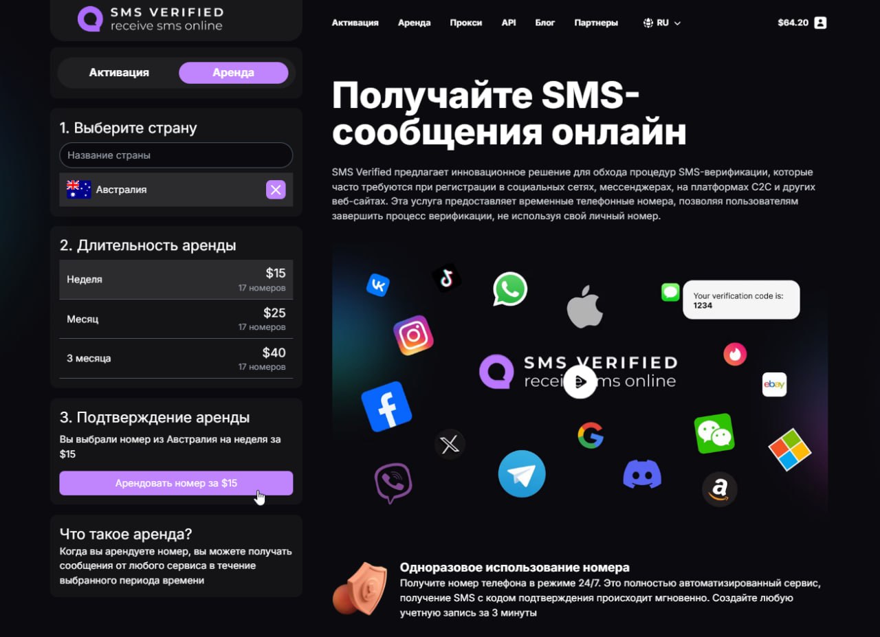 Для тех, кому нужен длительный доступ, предлагаются арендные номера. Вы можете использовать один и тот же номер для нескольких SMS-верификаций на протяжении недели, месяца или трех месяцев. Это особенно удобно для управления несколькими аккаунтами или работы над долгосрочными проектами.